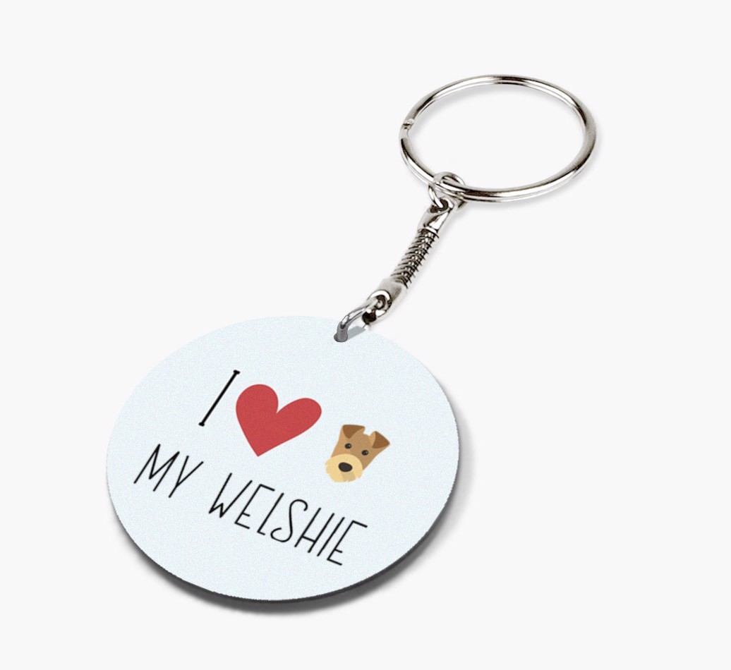 'I Heart My Welshie' - Personalized Double-sided keychain with Welsh Terrier Icon