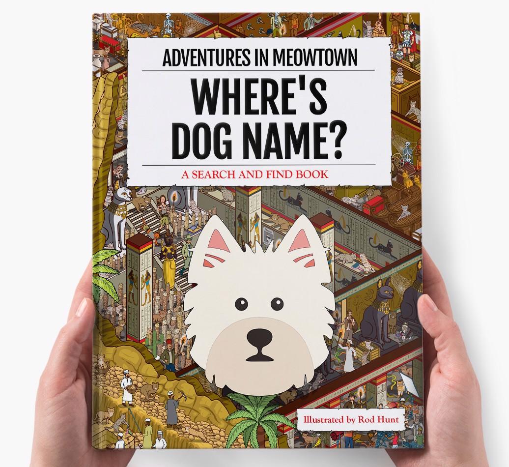 Get ready to unleash your inner detective with our popular Search & Find book, ‘Where’s (insert dog name)?’ It’s the personalized dog book everyone’s yapping about! With twelve beautifully illustrated locations to explore, we challenge you to find your adventurous {breedShortName} on each action-packed page. Can you spot all the canine cameos and funny parodies too?