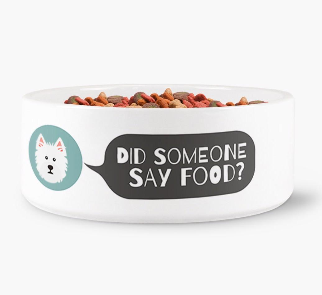 'Did Someone Say Food?' - Personalized Dog Bowl for your West Highland White Terrier