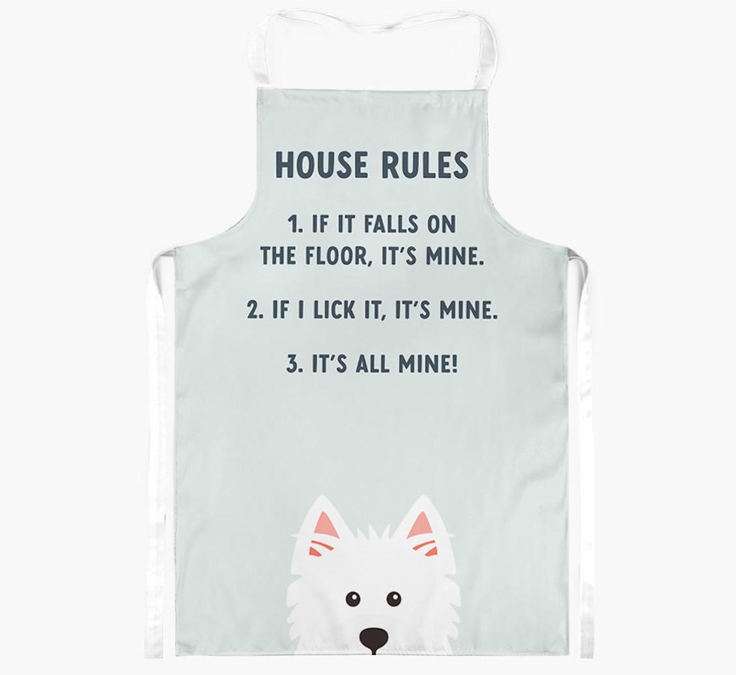 A fun way to show off your greedy pup, this stylish apron is personalized with your furry friend's icon and features their rules when it comes to food.