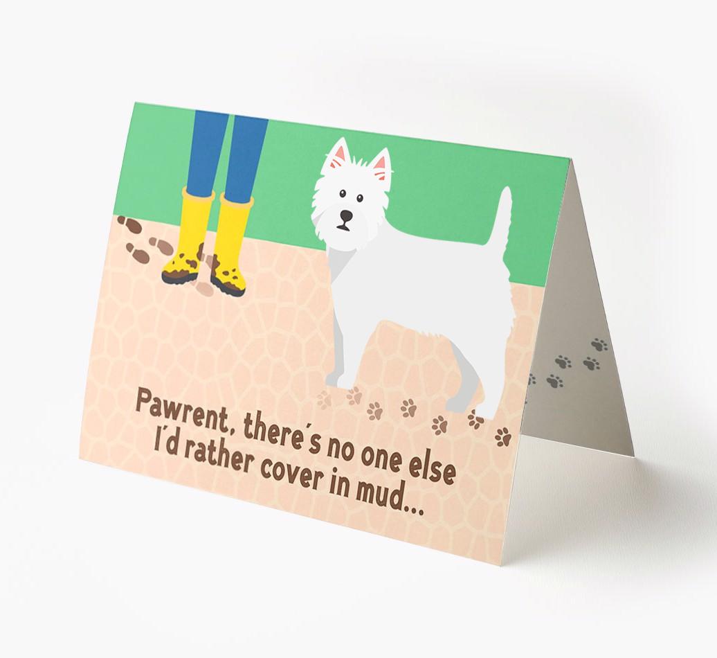This comical card is sure to delight West Highland White Terrier's pawrent (without getting muddy), especially as it stars their Westie's cheeky icon.