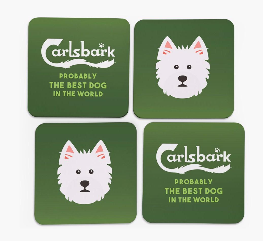 These coasters are pawfect for someone who loves their Carlsbark nearly as much as they love their West Highland White Terrier!