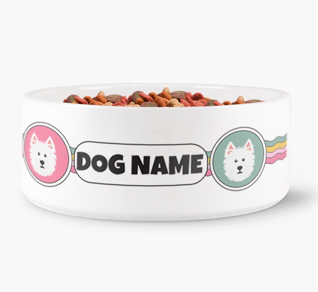 Rainbow Waves - Personalized Dog Bowl for your West Highland White Terrier