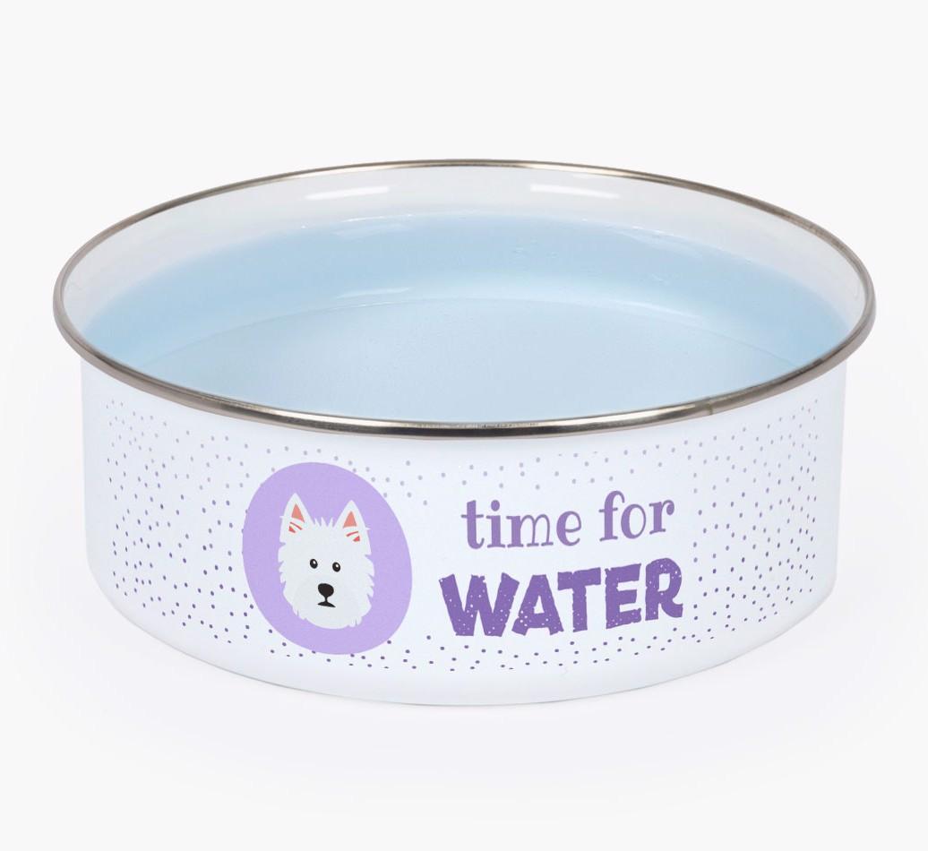 Time For Water: Personalized Enamel West Highland White Terrier Bowl