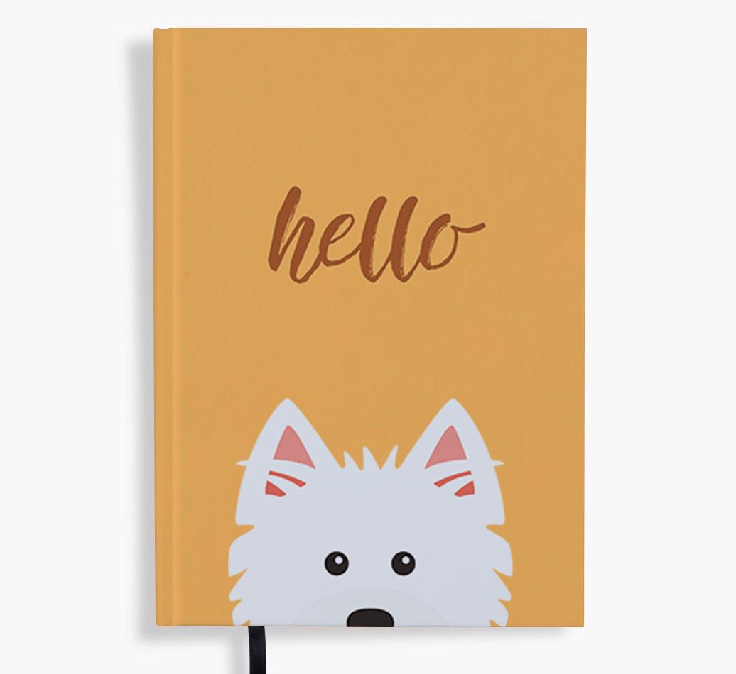 Featuring a sleek, minimalistic design, this stylish notebook is made extra special with the addition of West Highland White Terrier’s cute icon peeking up to say hello! What more could a Westie lover want from a notebook?