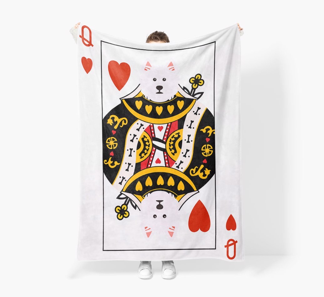 Featuring West Highland White Terrier as the Queen of Hearts, this furbulous blanket is pawfect for adding poochie personality to your home, and as it’s made from luxuriously soft sherpa fleece, it’s guaranteed to keep you snug and warm.