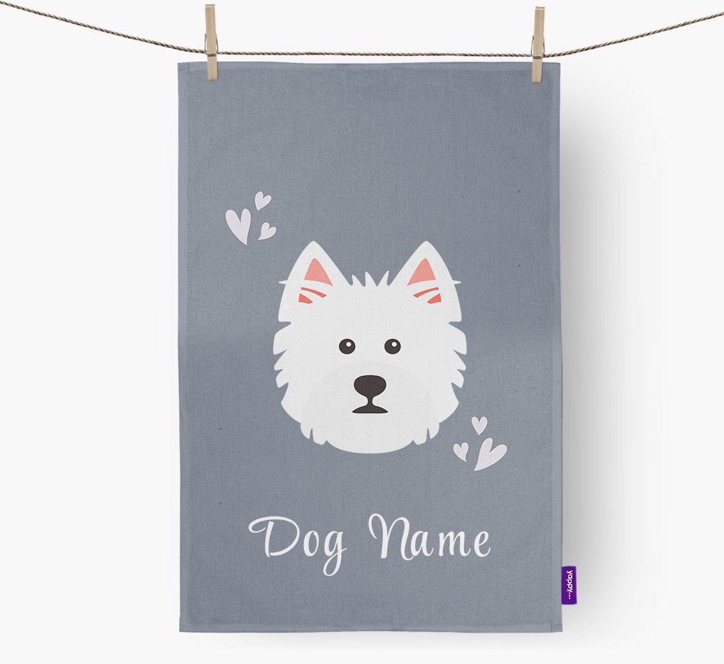 'Hearts' - Personalized West Highland White Terrier Dish Towel