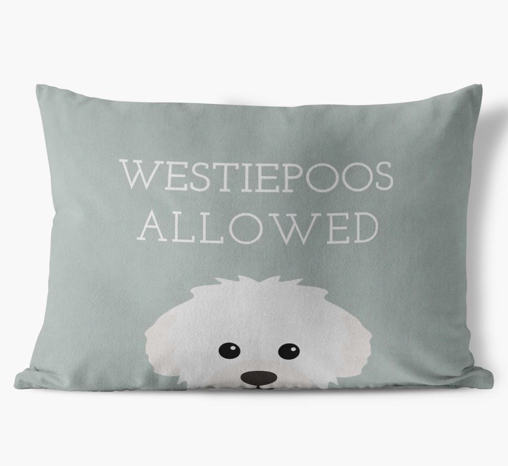 This exclusive, luxurious pillow is printed with the words ‘Westiepoos Allowed’, which I’m sure Your Westiepoo would definitely approve of.