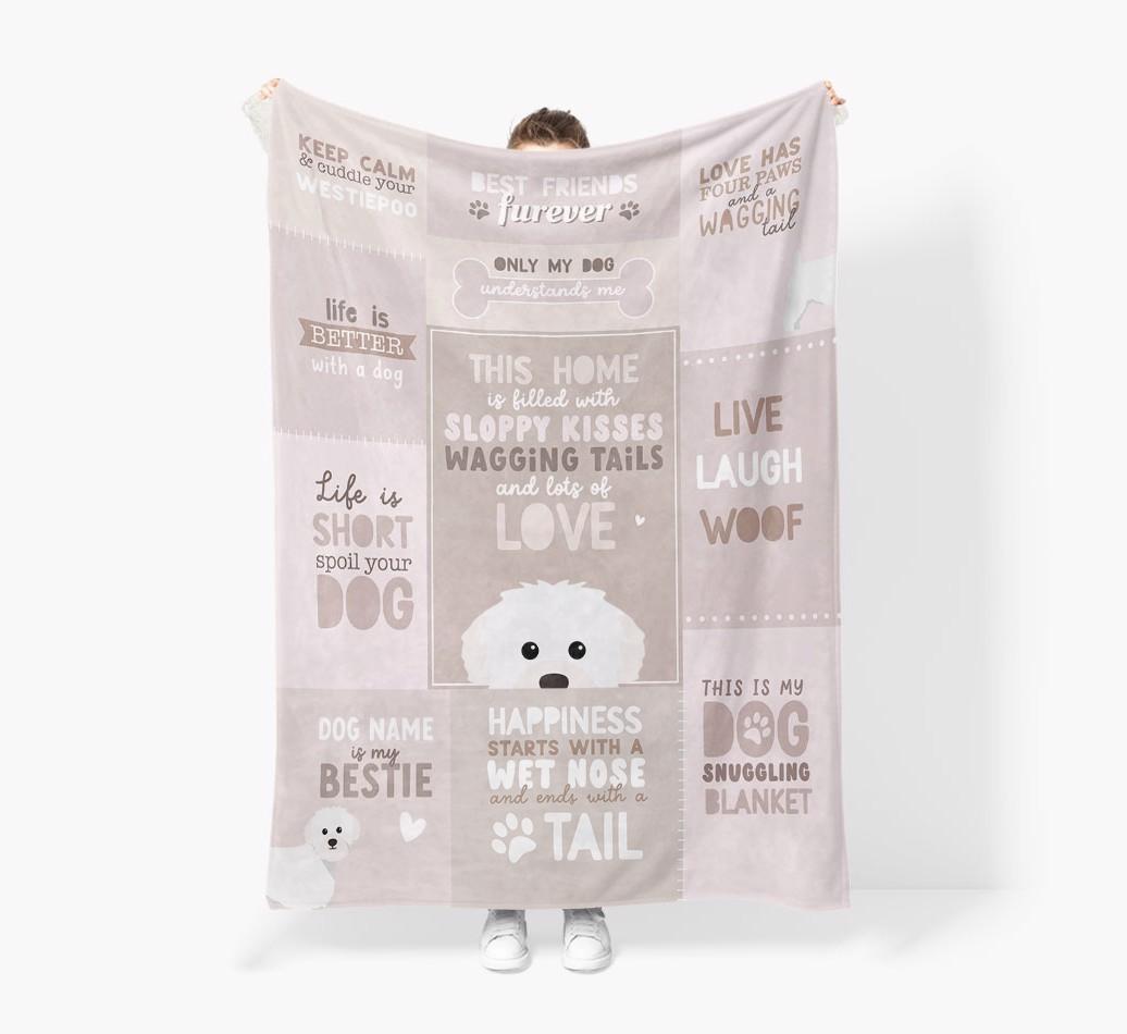 Filled with pawgeous quotes about your furry friend, this blanket is the perfect way to make naptimes with your Westiepoo the coziest ever.