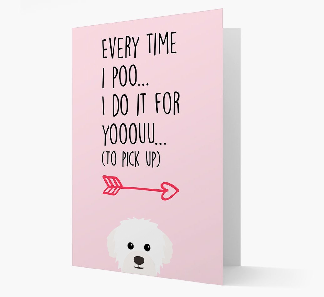 Printed with the words ‘Everytime I poo… I do it for youuuuu (to pick up)’, this lyrical card is personalized with our famous Westiepoo icon – so it’s clear who’s been leaving you all those delightful ‘gifts’ to pick up!