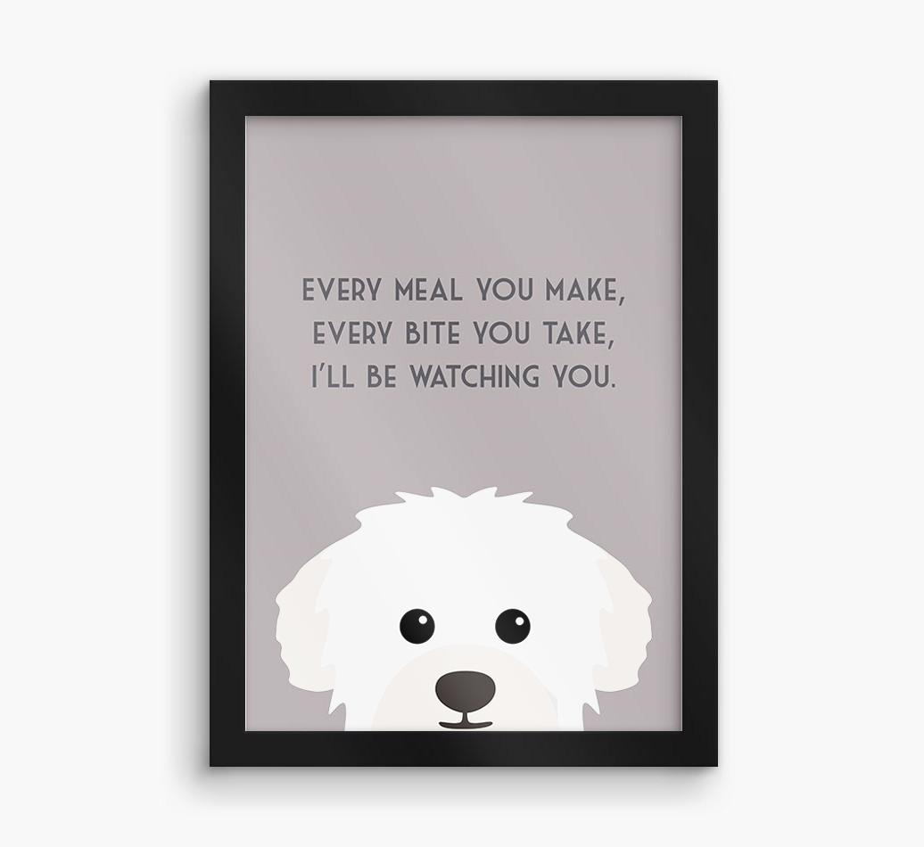 Printed with the words, ‘Every meal you make, every bite you take, I’ll be watching you’ and complete with our cute Westiepoo peeking from the bottom of the design, this artwork will look great on display in the kitchen or anywhere Westiepoo likes to watch you eat!