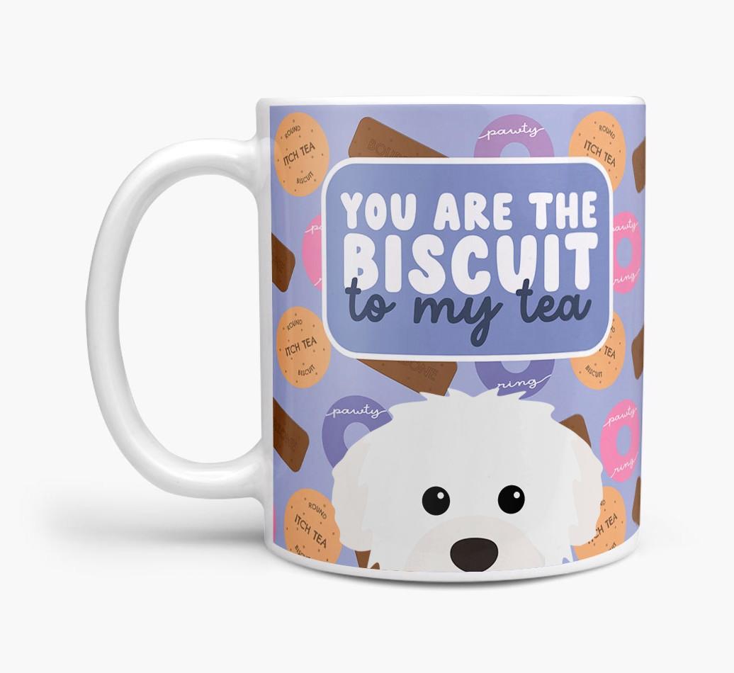 Featuring a cute biscuit motif paired with your Westiepoo's adorable face, this mug is bound to be a firm favorite in every household.