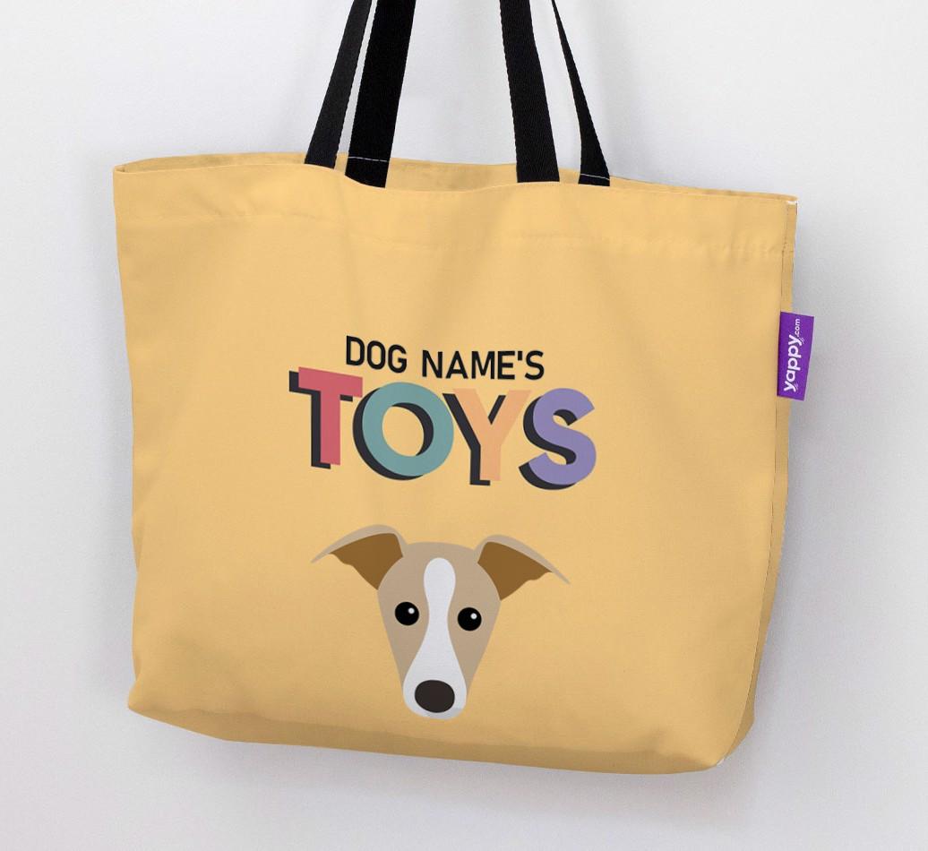 Don’t worry, we’ve got you covered with this pawsonalized canvas bag made for your Whippet’s toy collection!