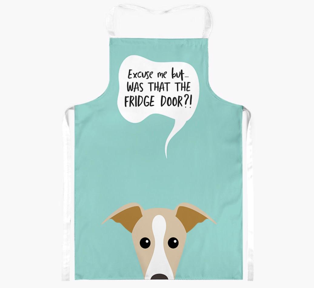 Featuring your hungry hound's cheeky icon and available in five eye-catching colors, this apron is a must-have for parents of greedy pups!