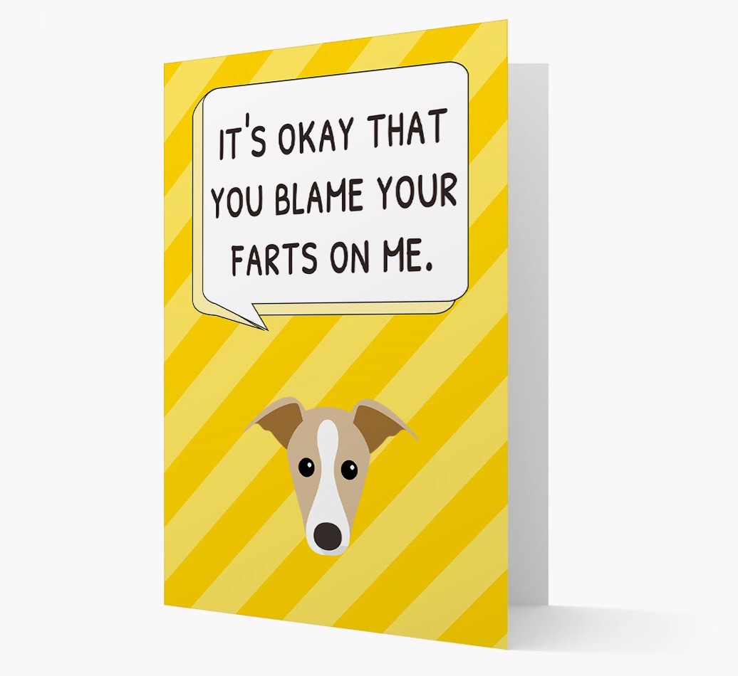 Does Your Whippet take the blame for their human's farts? Well, we think it's time your Whippet lets them know that the jig is up with this funny card!