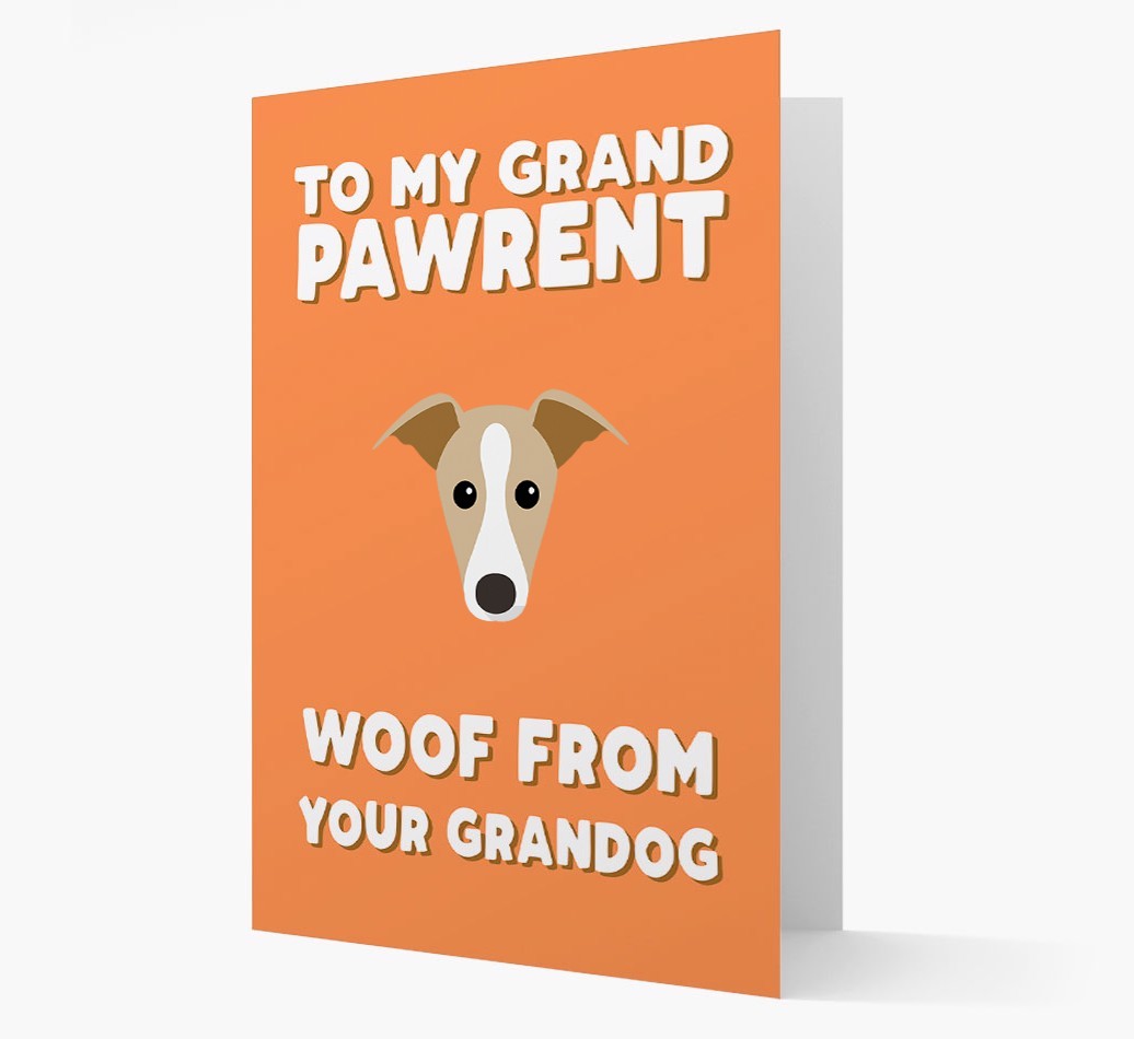 Featuring your Whippet's pawsome icon and available in four eye-catching colors, Whippet's grandpawrent will feel the woof each time they look at this card.