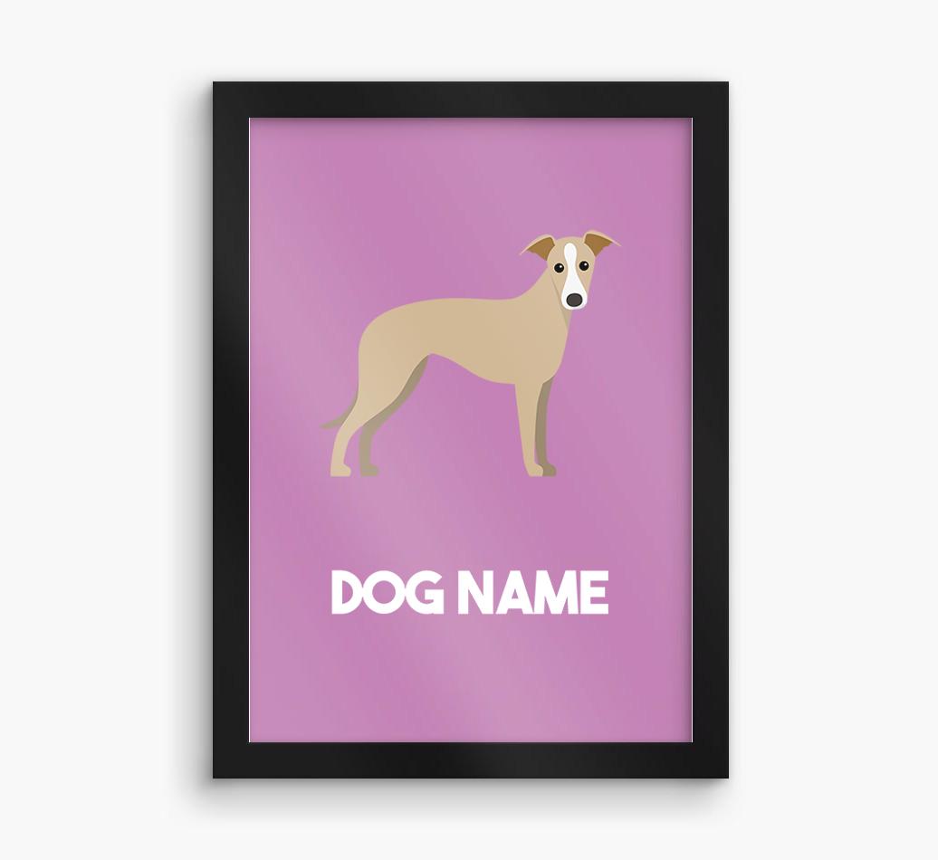 Personalized with Whippet's name and icon, this print is available in a range of colors to suit your personal style. This woofly artwork is the perfect way to add a pop of colour and plenty of pawsonality to any room!