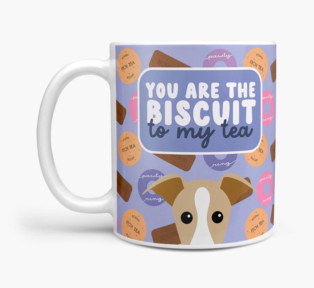 Featuring a cute biscuit motif paired with your Whippet's adorable face, this mug is bound to be a firm favorite in every household.