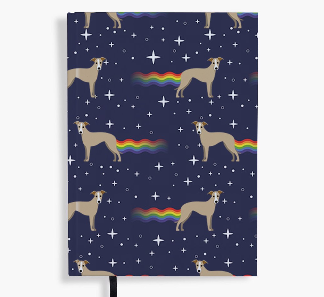 Featuring your cheeky Whippet, lots of twinkling stars and available in a range of bold colors, this fun notebook is truly out of this world.