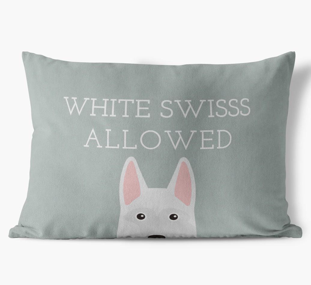 This exclusive, luxurious pillow is printed with the words ‘White Swisss Allowed’, which I’m sure Your White Swiss would definitely approve of.