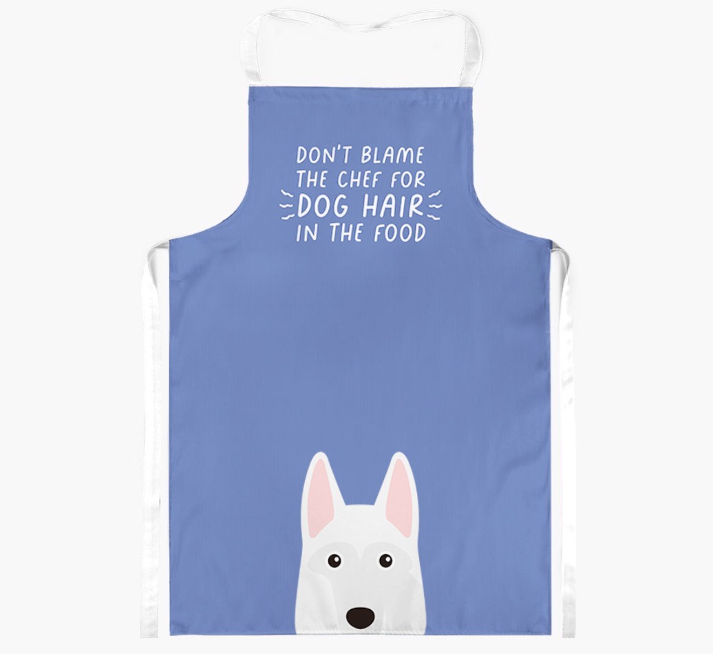 This funny apron will warn friends and family not to blame the chef for dog hairs in their food, they have White Swiss Shepherd Dog to thank for that!