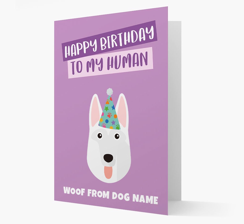 'Happy Birthday to My Human' - Personalized White Swiss Shepherd Dog Card