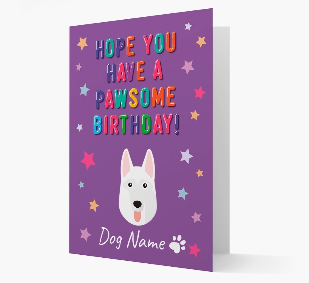 'Hope You Have a Pawsome Birthday' - Personalized White Swiss Shepherd Dog Card