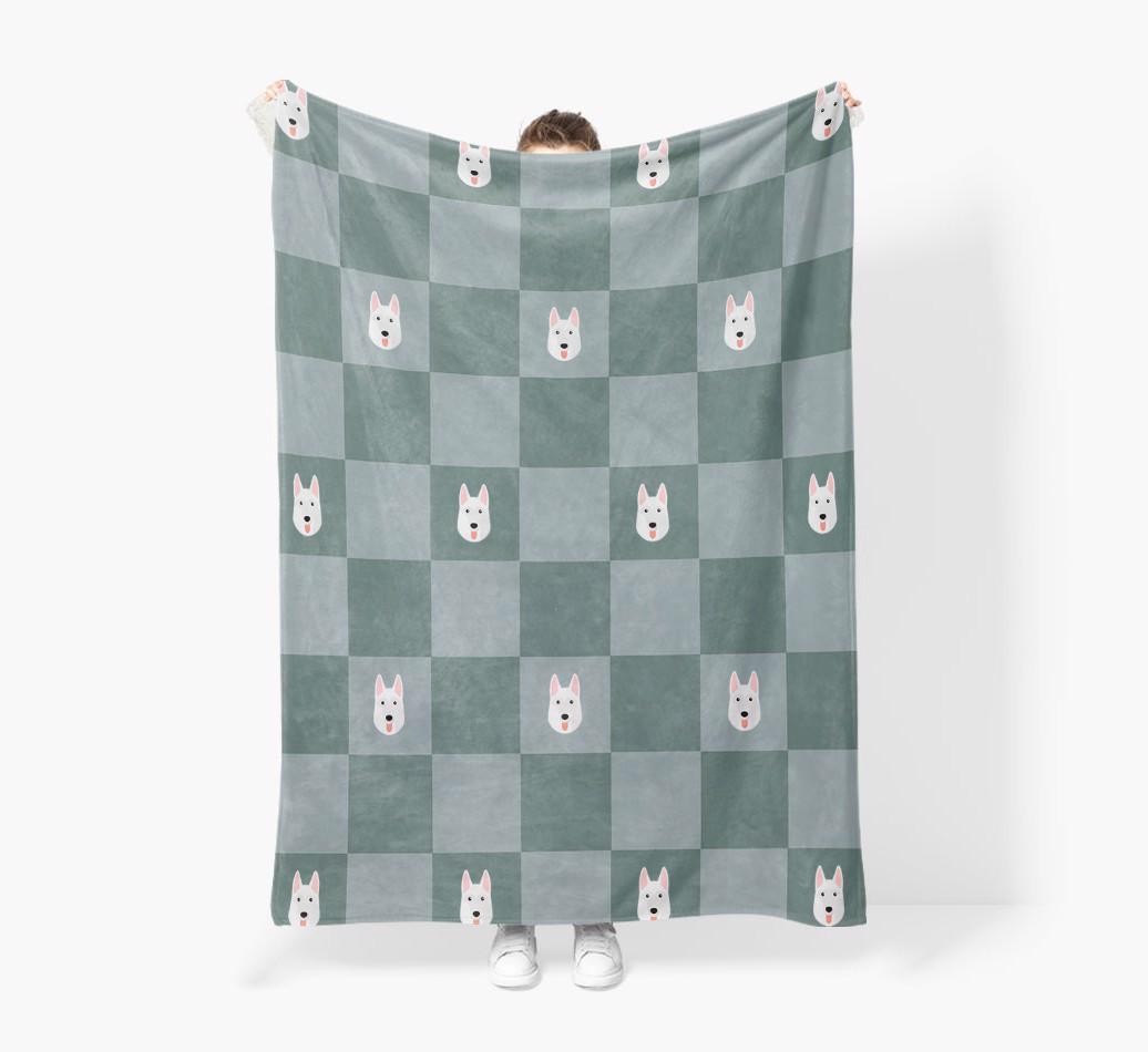 'Checkboard' - Personalized White Swiss Shepherd Dog Blanket: Premium Sherpa Fleece