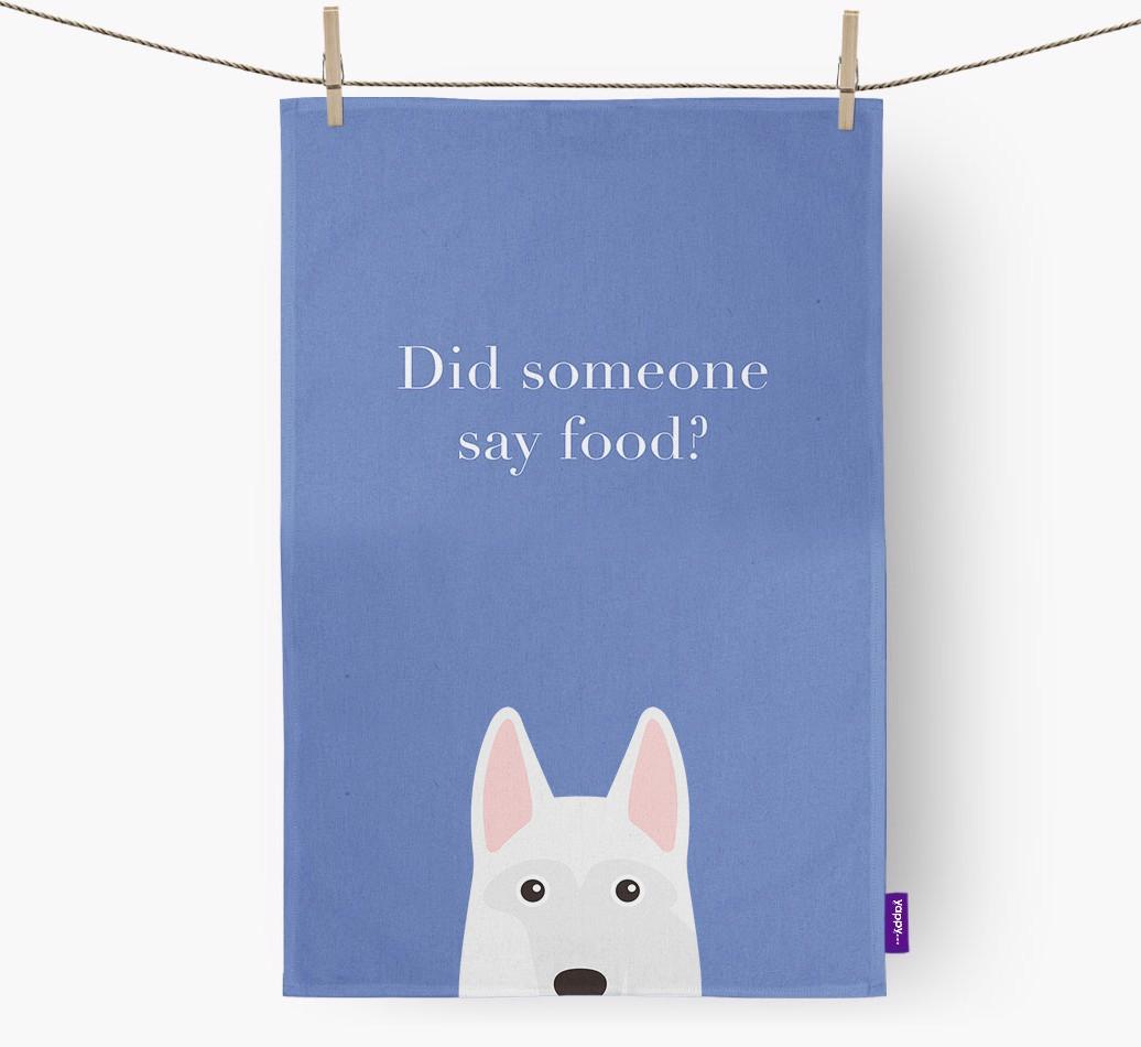 'Did Someone Say Food?' - Personalized White Swiss Shepherd Dog Dish Towel