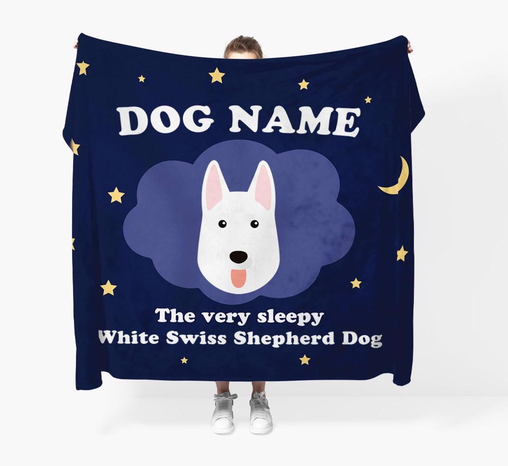 'The Very Sleepy...' - Personalized White Swiss Shepherd Dog Throw Blanket