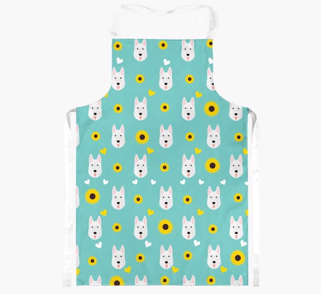 This apron has a delightful sunflower and heart pattern, and best of all - it's personalized with White Swiss Shepherd Dog's face too! This cute and colorful apron is sure to put a smile on every dog lover's face.