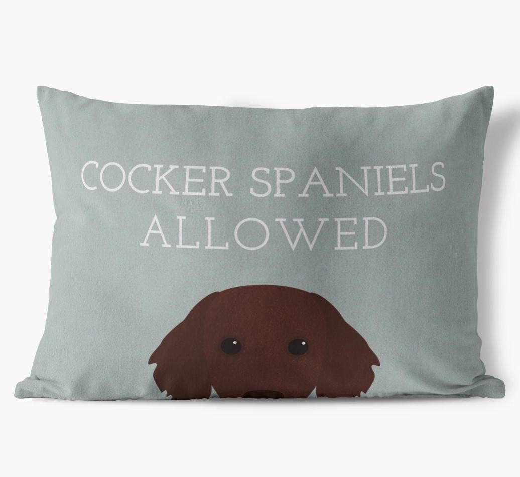 This exclusive, luxurious pillow is printed with the words ‘Cocker Spaniels Allowed’, which I’m sure Your Cocker Spaniel would definitely approve of.