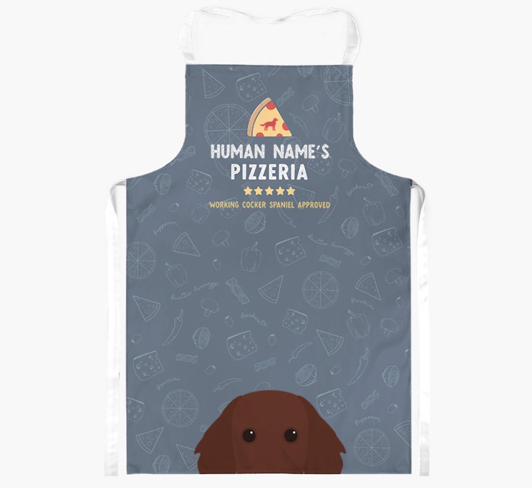 Featuring your furry friend's icon and lick of approval, plus your chosen human name, this apron is pawfect for anyone who considers themselves a pizza maestro in the kitchen. Available in a choice of 5 rustic colors, it'll make any Cocker lover happy.