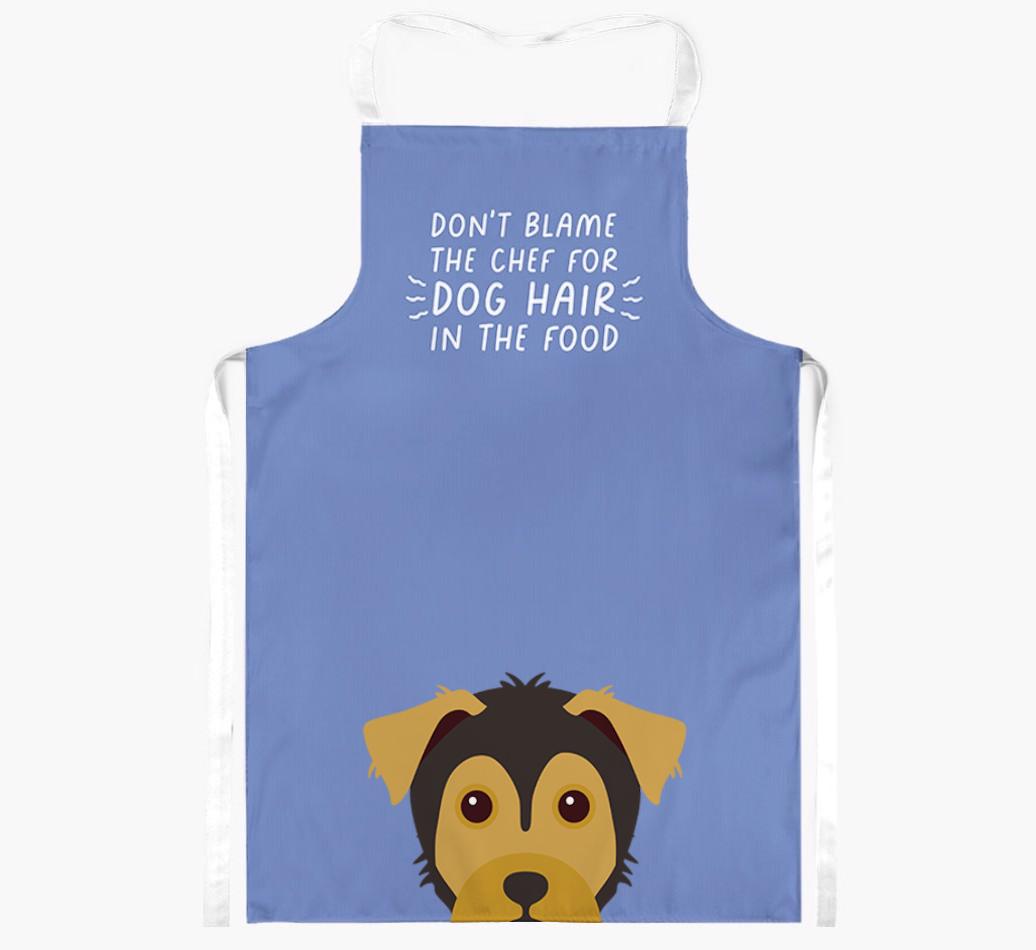 If you’re getting tired of people coming round and moaning about Yorkie Russell hair in the food, you’re going to need this apron to remind them that you cannot be blamed, it’s Yorkie Russell’s fault!