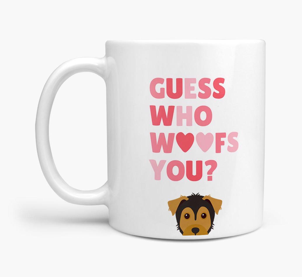 Personalized with Yorkie Russell's cute face, this adorable mug is perfect for showing off the one who "woofs" you - how sweet!