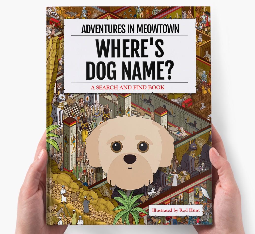 Get ready to unleash your inner detective with our popular Search & Find book, ‘Where’s (insert dog name)?’ It’s the personalized dog book everyone’s yapping about! With twelve beautifully illustrated locations to explore, we challenge you to find your adventurous {breedShortName} on each action-packed page. Can you spot all the canine cameos and funny parodies too?