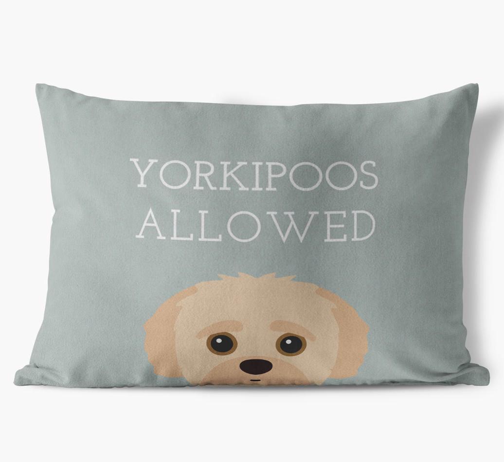 This exclusive, luxurious pillow is printed with the words ‘Yorkipoos Allowed’, which I’m sure Your Yorkipoo would definitely approve of.