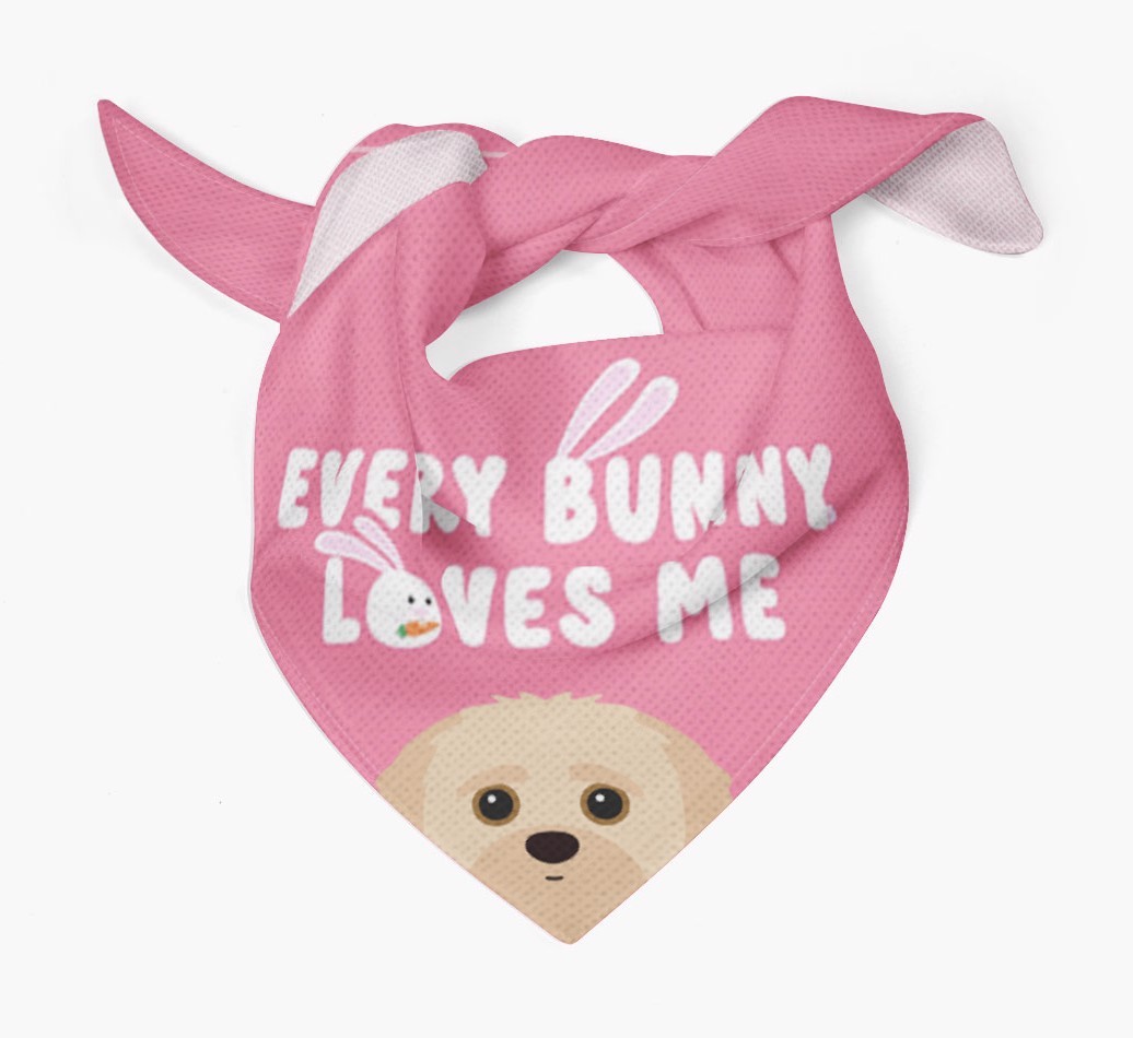 Tailored with the fabulous saying: 'Every Bunny Loves Me', this bandana is the perfect addition to your Yorkipoo's wardrobe! Available in four egg-ceptional colors and personalized with your Yorkipoo's icon, this is the perfect pawchase for Easter!