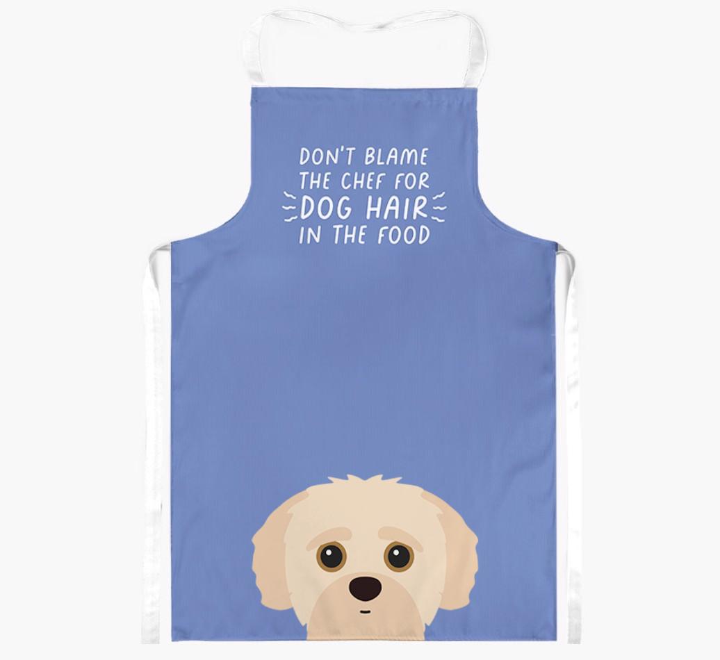 This funny apron will warn friends and family not to blame the chef for dog hairs in their food, they have Yorkipoo to thank for that!