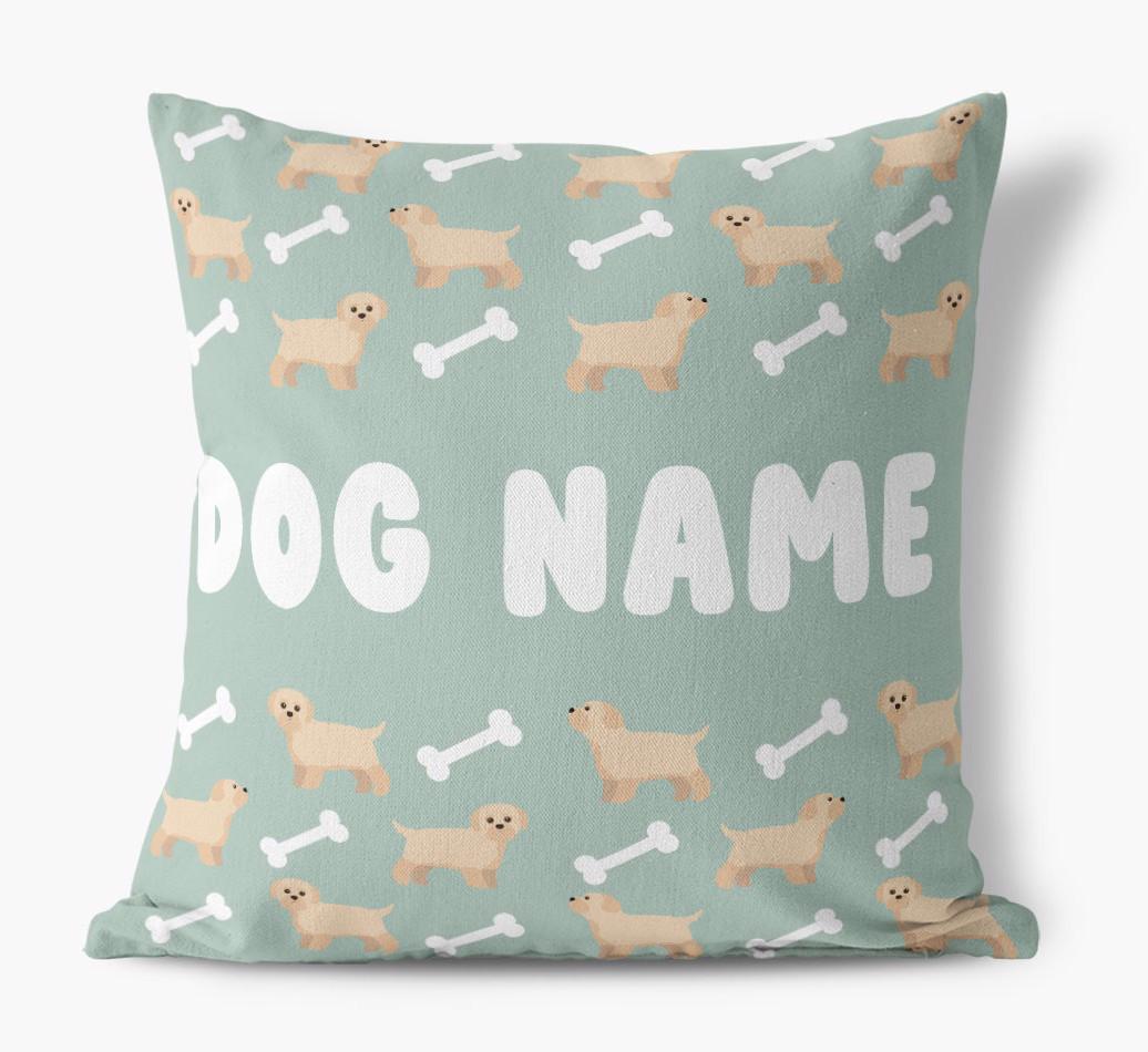 Personalized with Yorkipoo’s name against a background of Yorkipoo icons and bones, this gorgeous pillow is full of pawsonality.
