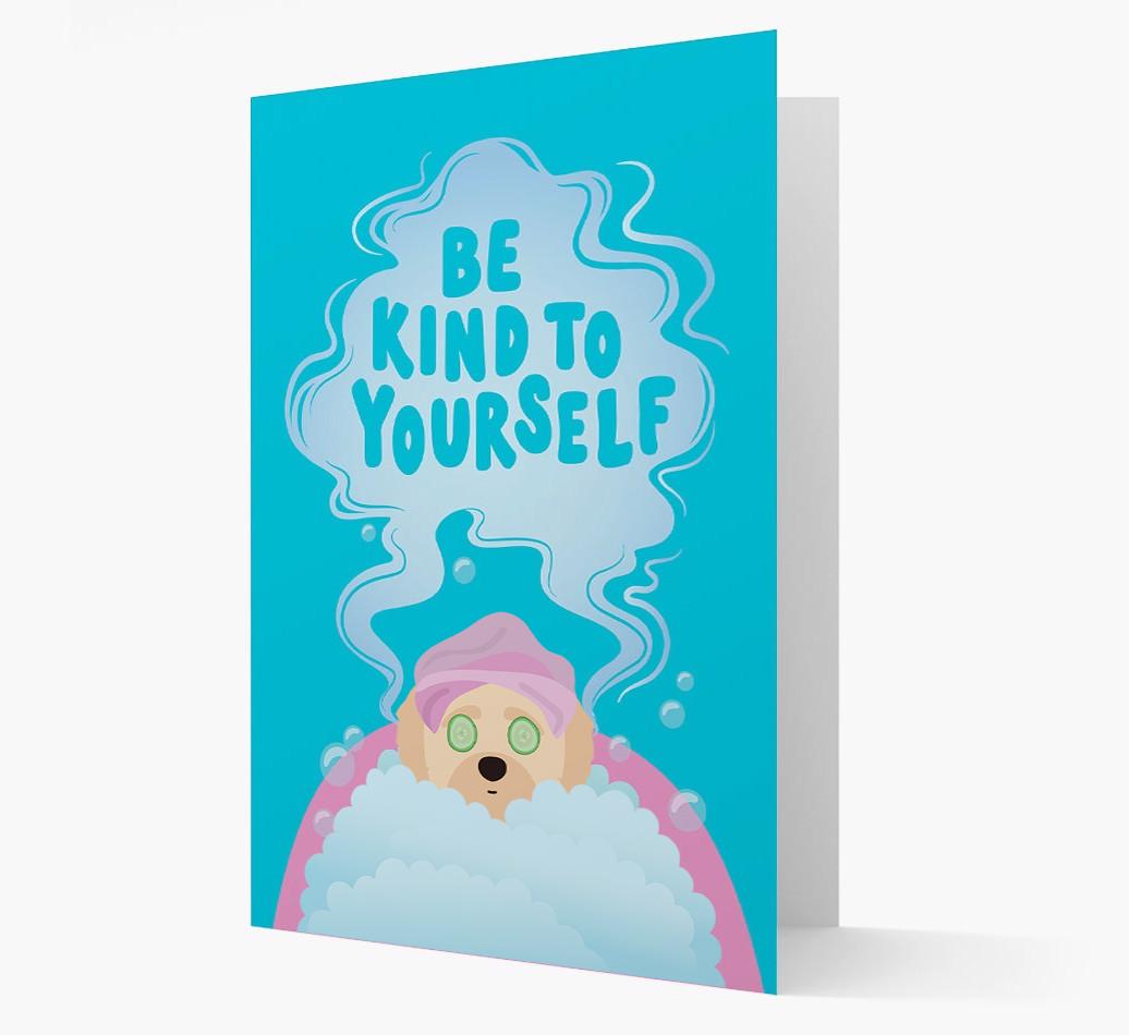 With this furbulous Yorkipoo design, featuring Yorkipoo relaxing in a bath with the words ‘Be Kind To Yourself’, this card is the ulti-mutt way to let someone you love know that they need to chill!