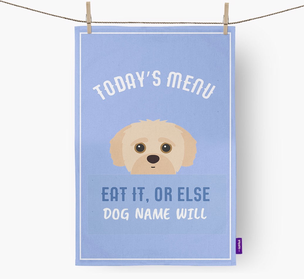 'Eat It, Or Else...' - Personalized Yorkipoo Dish Towel