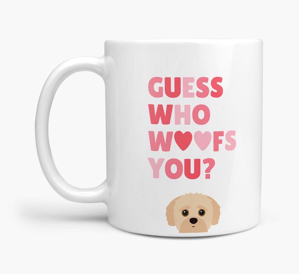 Personalized with Yorkipoo's cute face, this adorable mug is perfect for showing off the one who "woofs" you - how sweet!