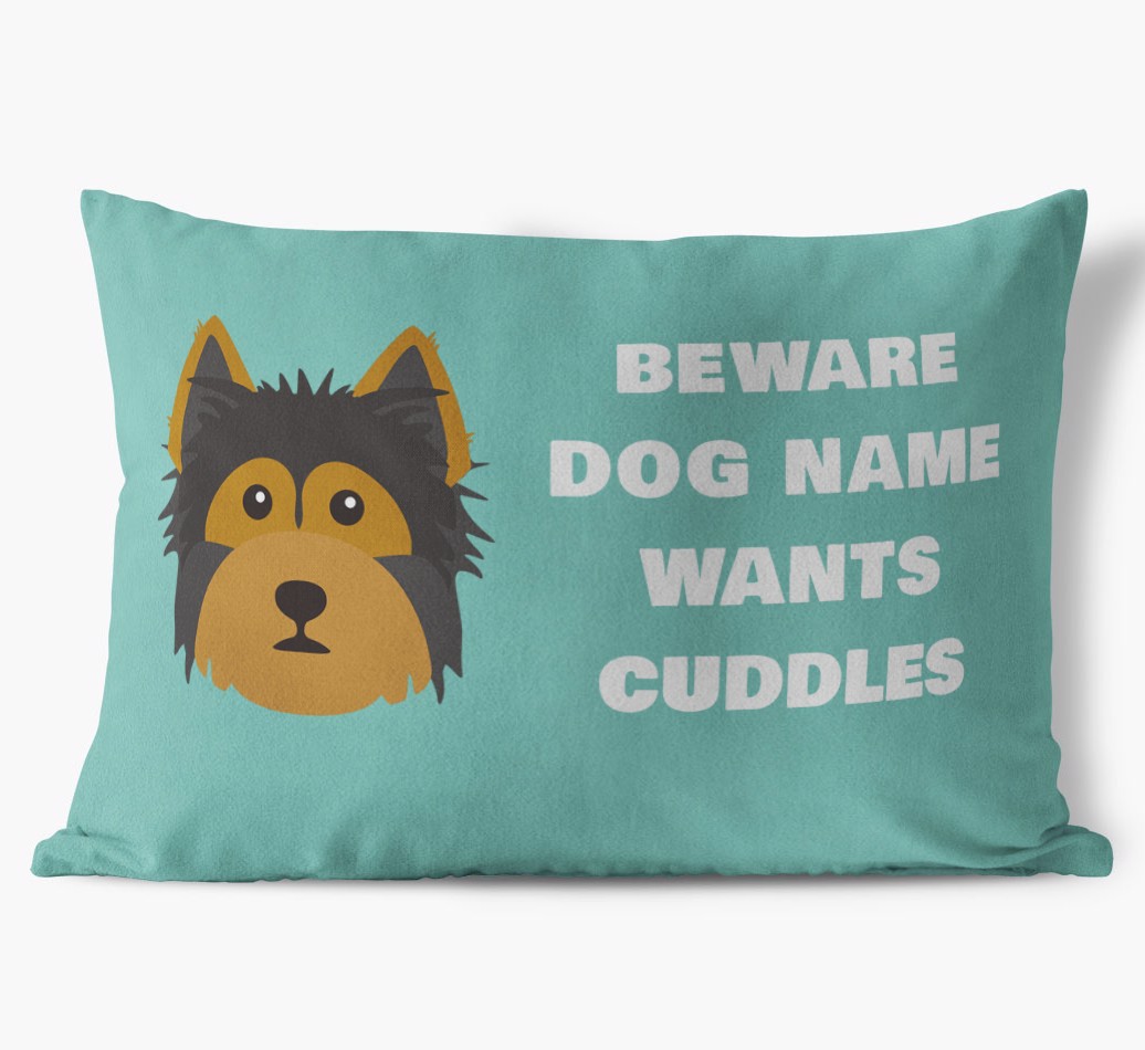 Beware of Cuddles: Personalized Yorkshire Terrier Soft Touch Pillow