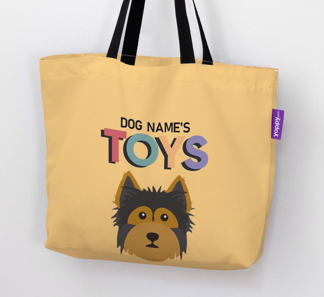 Don’t worry, we’ve got you covered with this pawsonalized canvas bag made for your Yorkshire Terrier’s toy collection!