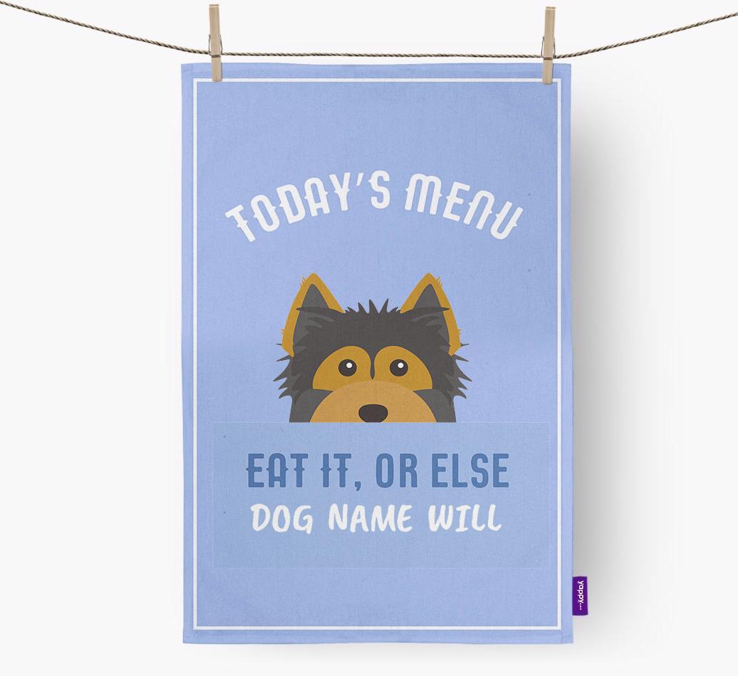 'Eat It, Or Else...' - Personalized Yorkshire Terrier Dish Towel