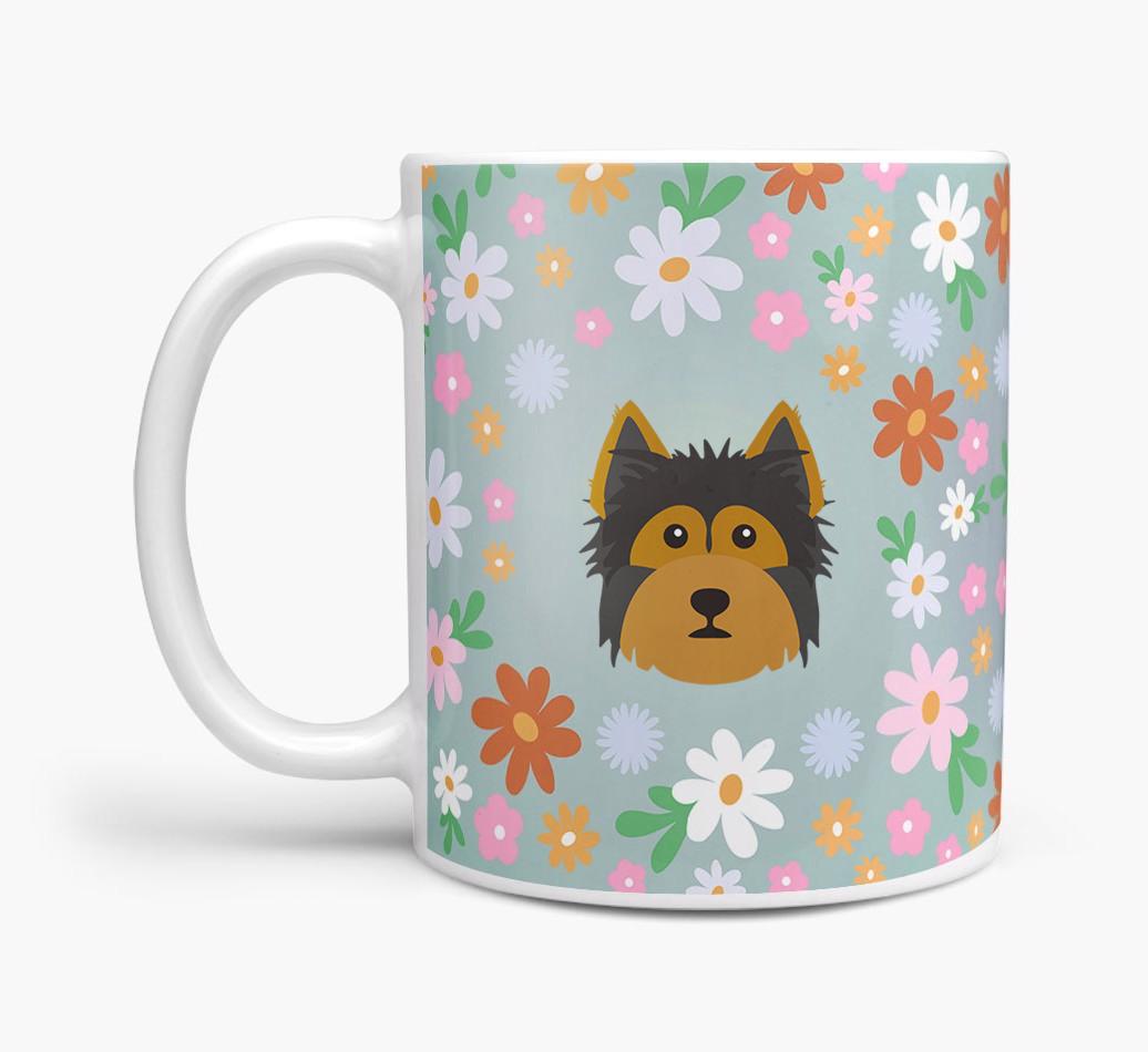 Featuring a colorful bunch of flowers, this mug is printed with the words 'woofly grandma' on one side of the mug and your Yorkie's cute icon on the other. Bloomin' lovely!