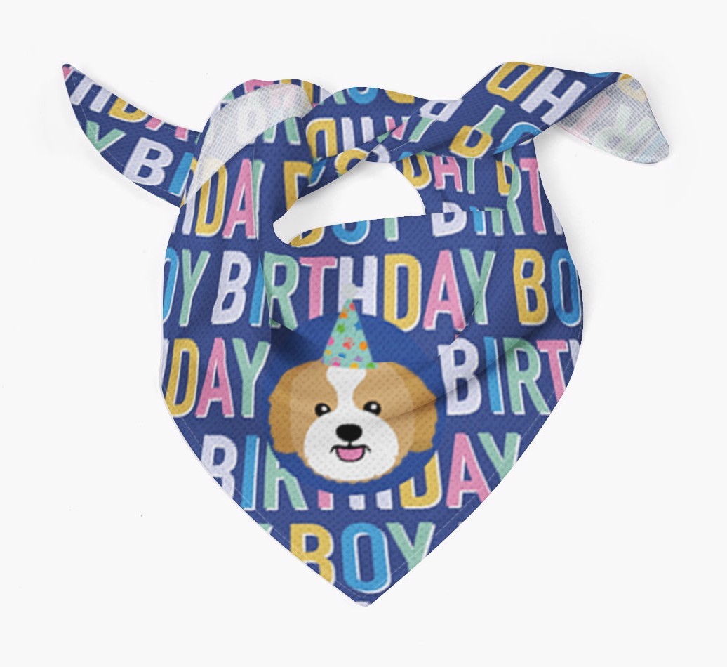 Featuring a colorful text pattern that reads 'birthay boy' and personalized with Zuchon's cute icon (complete with a fun party hat), your Zuchon will look simply pawgeous on their special day when they're wearing this bandana.