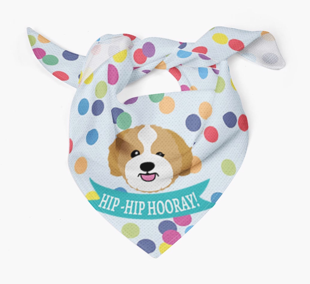 Featuring our famous Zuchon icon and the words ‘hip-hip hooray!’ printed upon a colorful confetti background, Your Zuchon is sure to look pawty ready wearing this bandana.