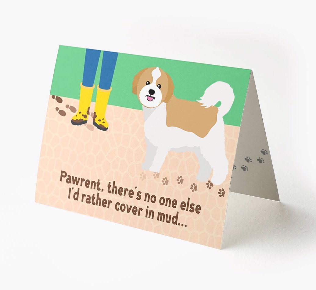 This comical card is sure to delight Zuchon's pawrent (without getting muddy), especially as it stars their Zuchon's cheeky icon.